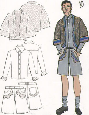 The following fashion illustrations explore stylized facial features alongside precise, proportionally accurate fabric rendering, balancing personality with technical precision.